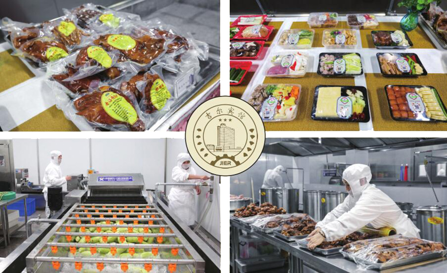 吉尔中央厨房占地近1500㎡,配备自动蔬菜清洗机、 多功能切菜机等自动化加工设备32台套,可加工制作蒸、 炒、煎、炸等9大系列近百种产品,能实施专业化配送,满 足近万人就餐需要。